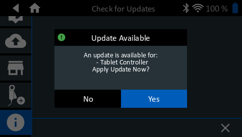 Periodically the DSS-5000 checks for available software updates. When an update is available a pop-up message like the one below is displayed. Make sure you meet the requirements discussed above, and press Yes to continue. Press No to install the software update later.